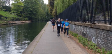 It was a chilly and early start to the day, crossing the starting line at 6:10am on Saturday morning. We had to wear headsphones (silent disco style) for the safety talk and count-down due to Lambeth Council noise controls. Temperatures did rise through the day getting to a very warm, almost 20 degrees.